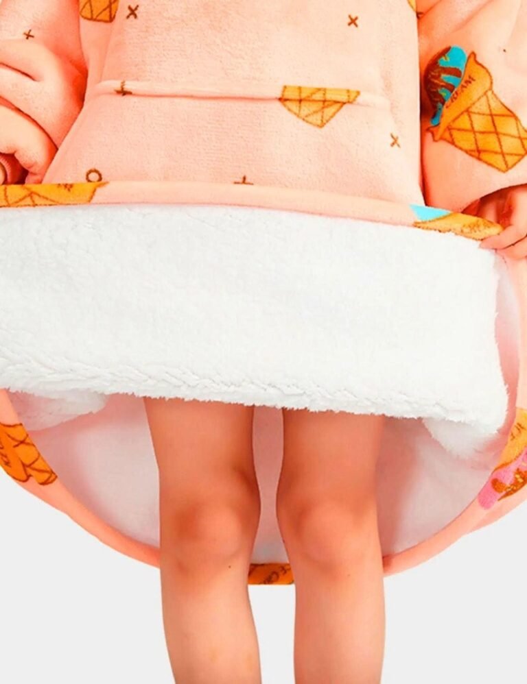 Imagine-toi un instant, emmitouflée dans ce pull, un chocolat chaud à la main, prête à te plonger dans ton livre ou ta série préférée. Son imprimé original de cornets de glace te rappelle que la mode peut aussi être fun et décalée, apportant une touche de gaieté à ta routine.